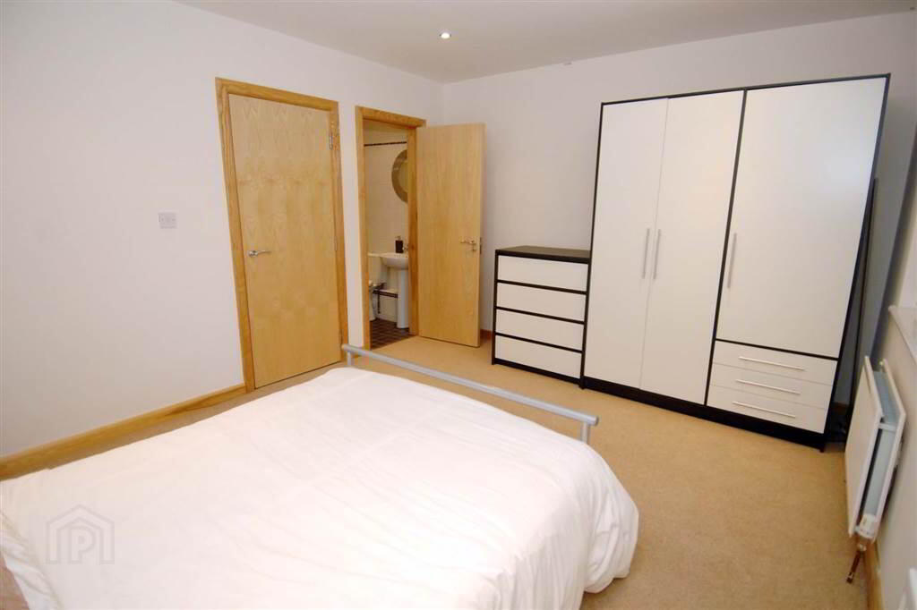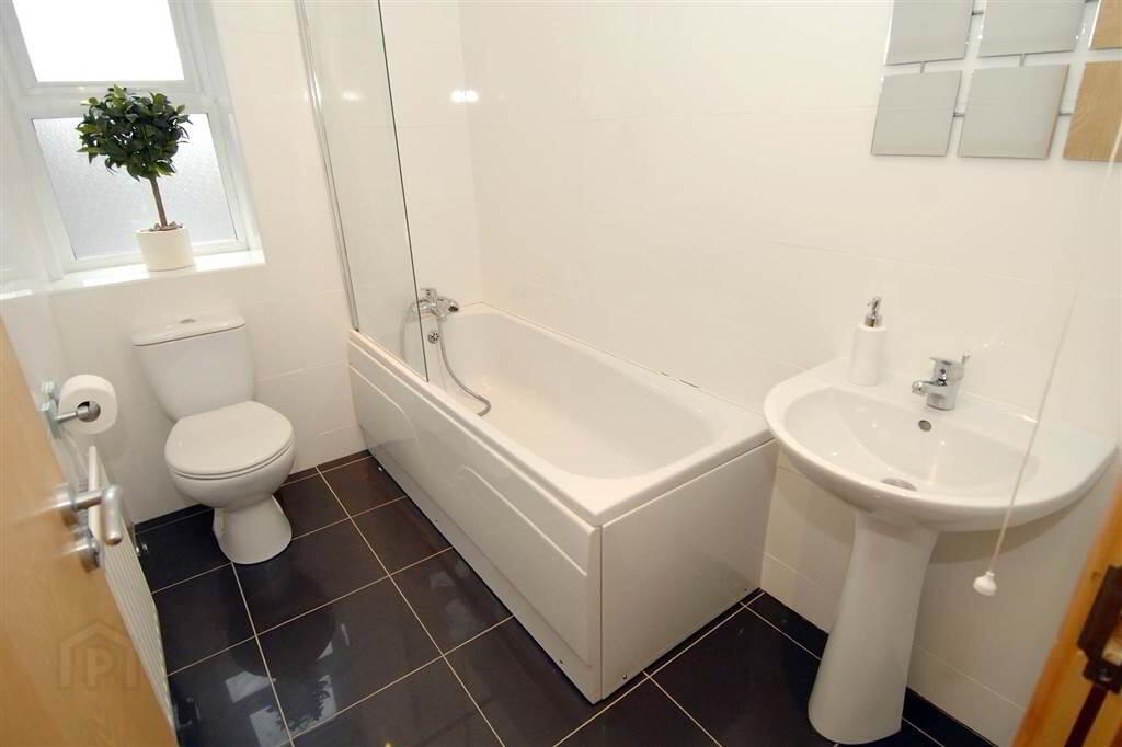 At widest points. Enclosed shower cubicle with modern tiling and shower attachment. Low flush W/C. Pedestal wash hand basin with mixer tap. Tiled floor. Tiled walls. Concealed spotlights. Extractor fan.
