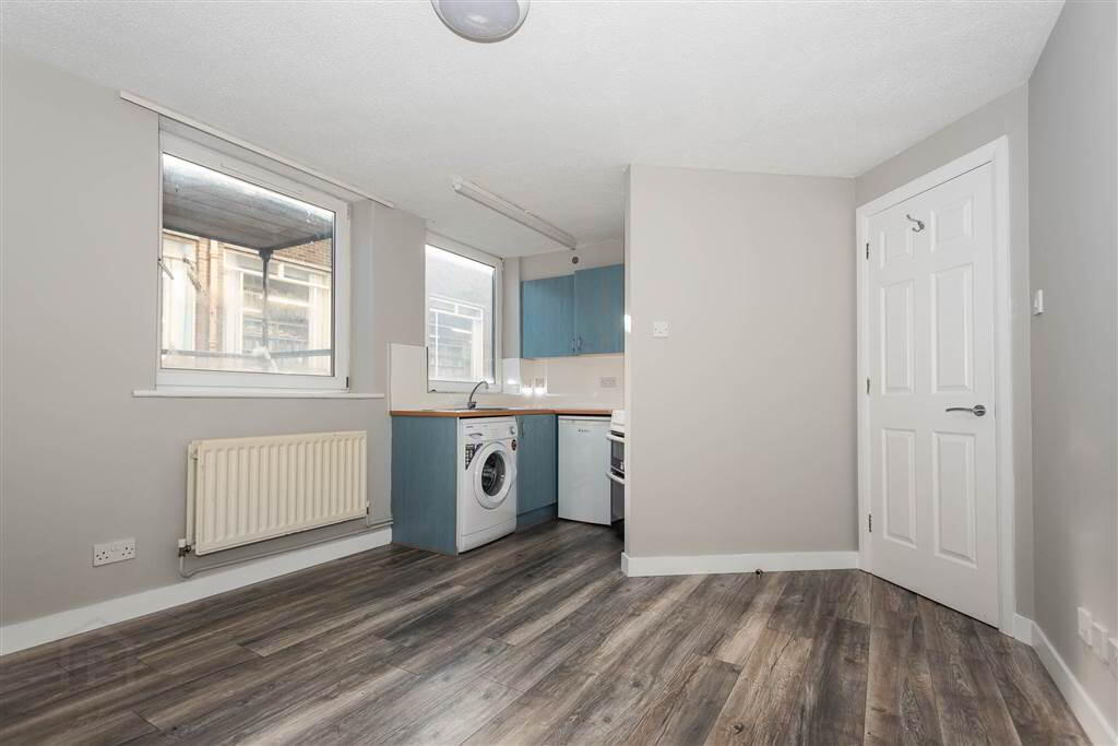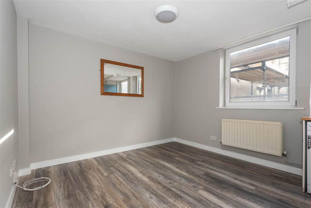 Good range of high to low-level units. Single drainer stainless steel sink unit with mixer taps. Plumbed for washing machine. Space for oven/hob. Integrated extractor fan. Space for undercounter fridge-freezer. Partially tiled walls. Laminate wood flooring.