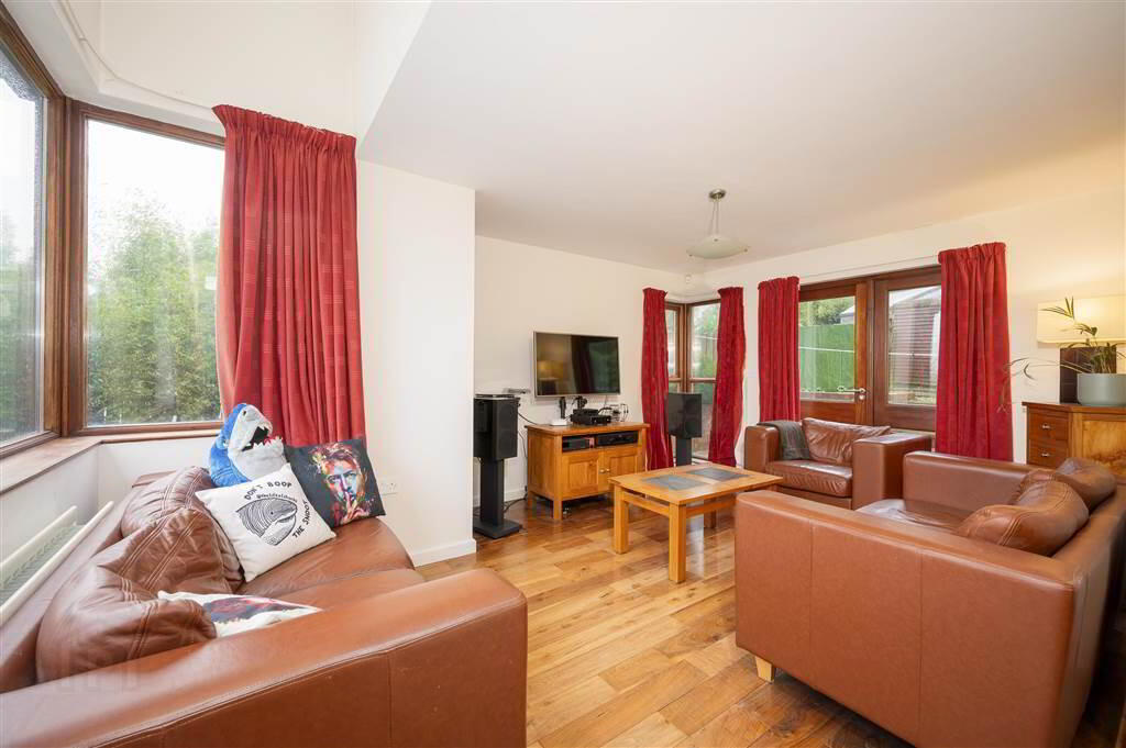 An attractive spacious family room which oozes light and tranquility. Double doors opening onto rear enclosed private garden in lawns.