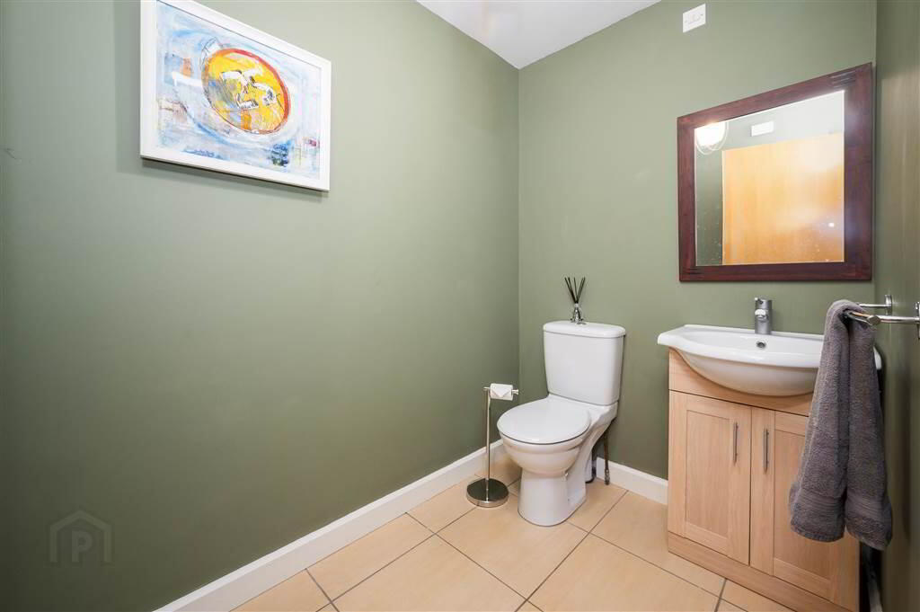 Low flush wc. Vanity wash hand basin. Tiled splash back. Ceramic tiled floor. Extractor Fan.
