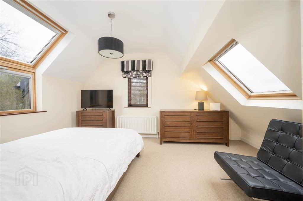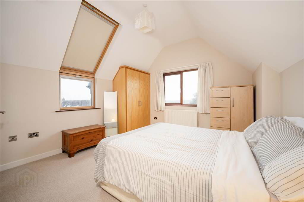 Into eaves. Range of built-in wardrobes, Velux windows. Views over Dundrum Bay and the Mourne Mountains.